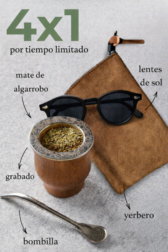 ¡ Incluye: 1 camionero de algarrobo + 1 yerbero 100% cuero gamuzado de regalo + 1 bombilla premium de regalo + personalizado gratis!