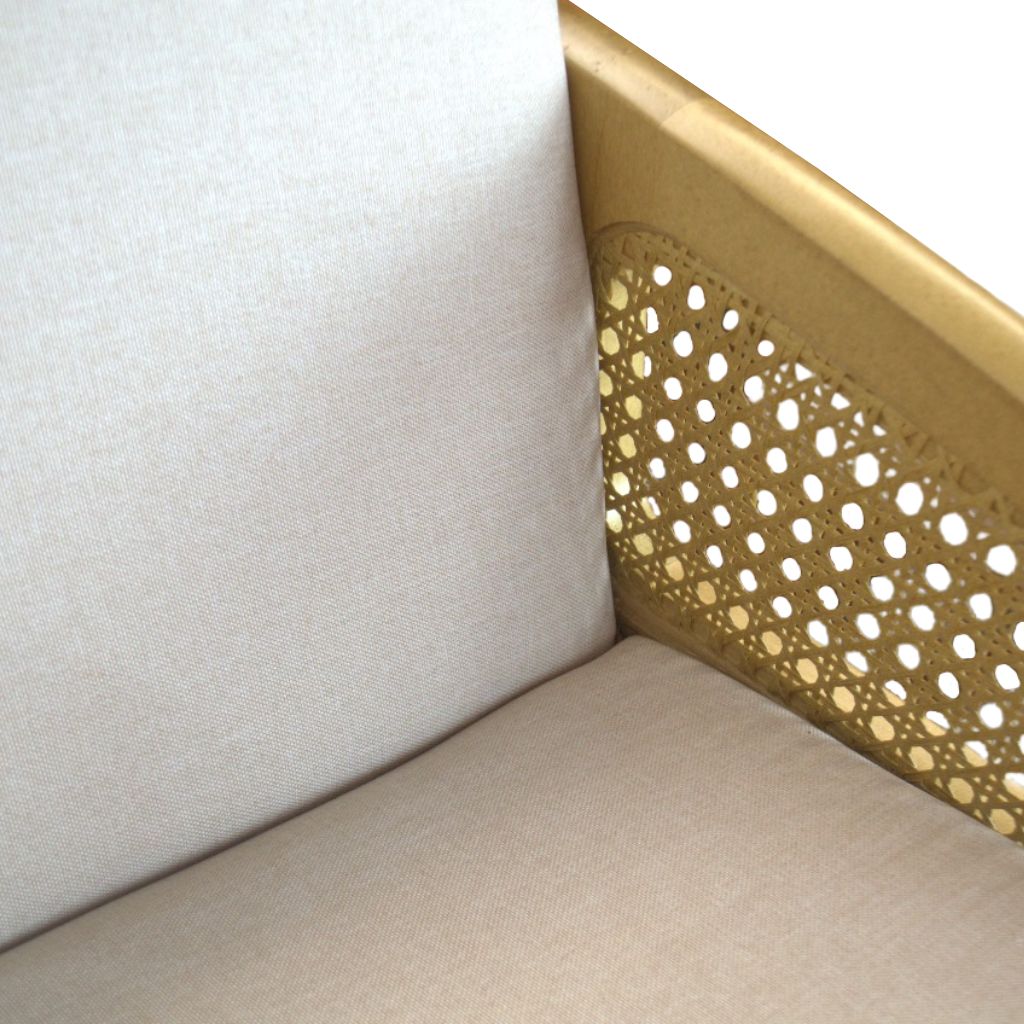 Uno de sus grandes diferenciales son los apoyabrazos con palha (esterilla) sextavada, que suman un toque artesanal, exclusivo y de gran valor estético, haciendo de esta banqueta una pieza única.