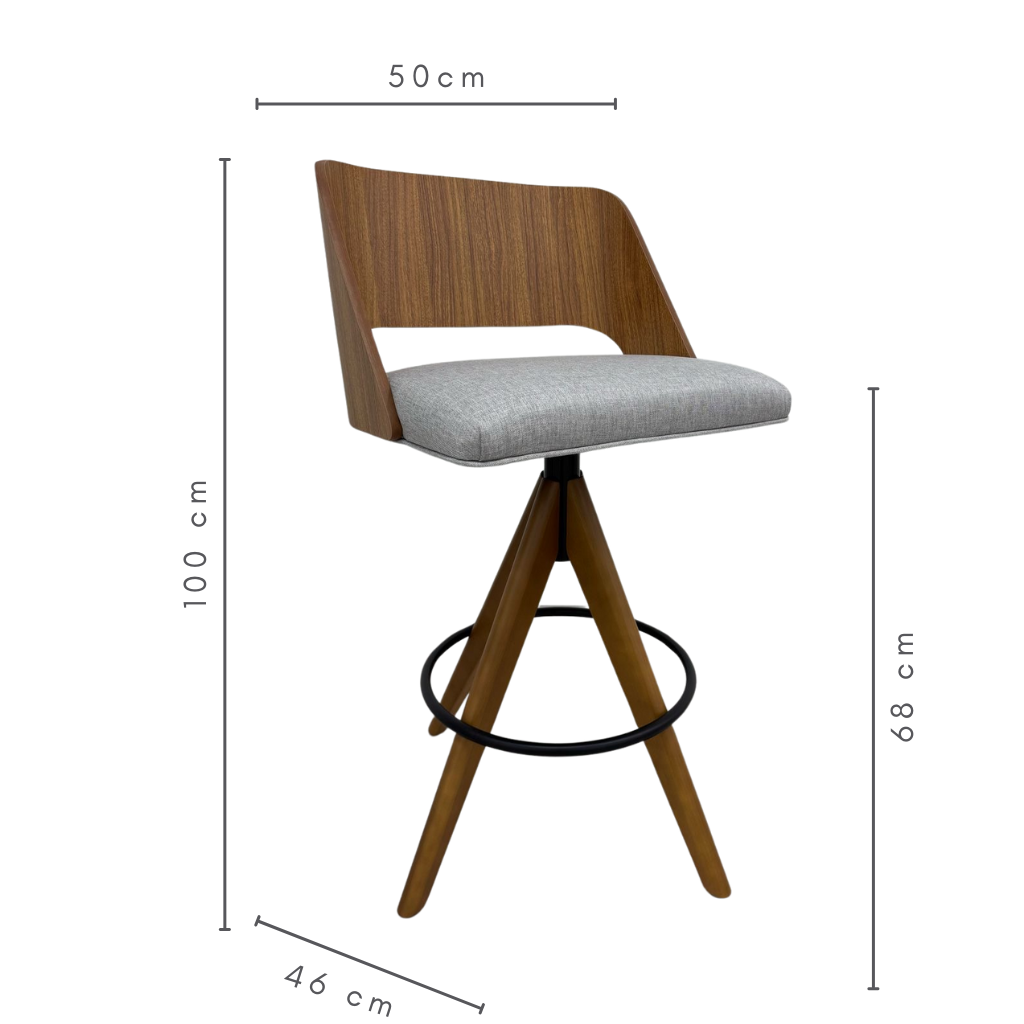 Banqueta Tapizada Giratoria Márcia – Freijó – Tela 362 Piccolo Gris – 65 cm